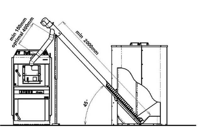 Dávkování paliva: pro tento hořák jsou určeny speciální šnekové dopravník DA1500 – 4000.