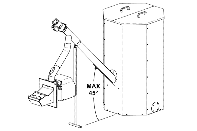 POZOR: Dopravník je dodáván samostatně, ale je nedílnou součástí systému hořáku na pelety A45 / A85