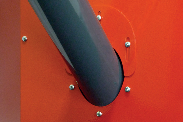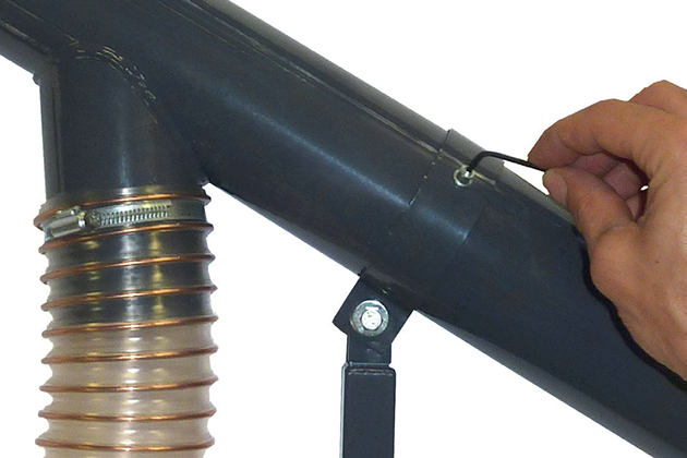 Ke každému dopravníku je dodávána podpěrná noha. Její délku nastavíme tak, aby byl úhel dopravníku maximálně 45° a hadice byla napnutá.