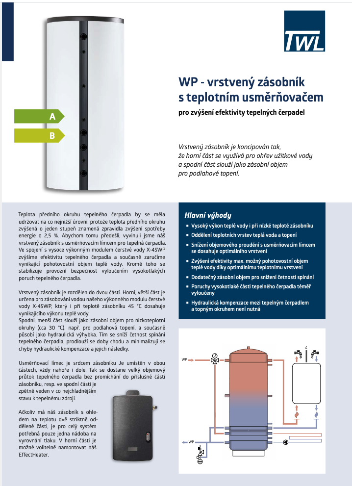 - zvýšení efektivity max. možný pohotovostní objem teplé vody díky optimálnímu vrstvení