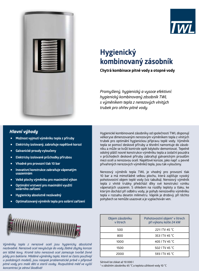 - vysoký výkon teplé vody i při nízké teplotě zásobníku