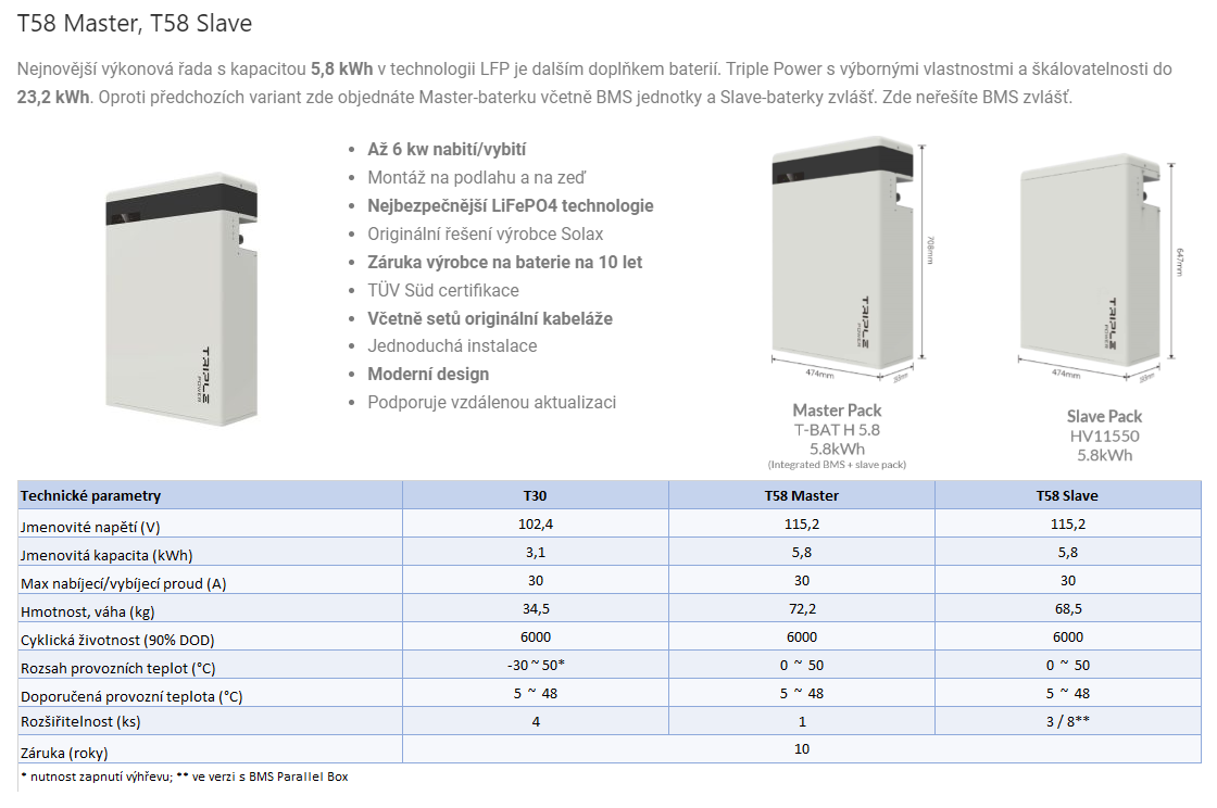 Baterie Solax Triple Power T58, 5,8kWh Slave, Verze V1