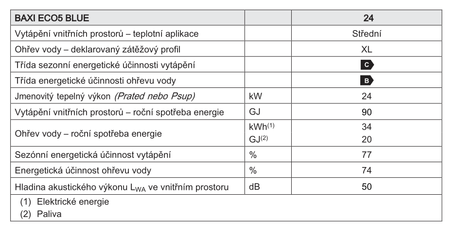 | Energetická třída topení kotle: | C |