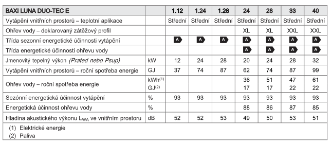 | Kotel | LUNA DUO-TEC E 24 | LUNA DUO-TEC E 28 | LUNA DUO-TEC E 33 | LUNA DUO-TEC E 40 | LUNA DUO-TEC E 1.12 | LUNA DUO-TEC E 1.24 | LUNA DUO-TEC E 1.28 |