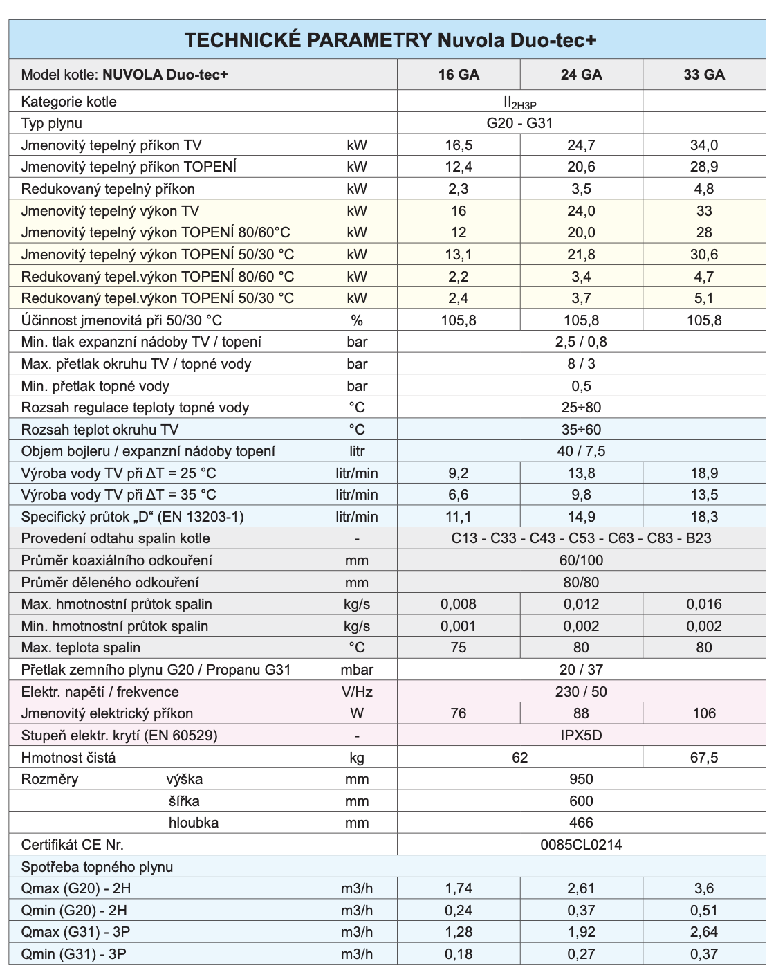 - Nuvola Duo-tec+ 24 (3,4 - 24 kW - do topení max. 20kW)