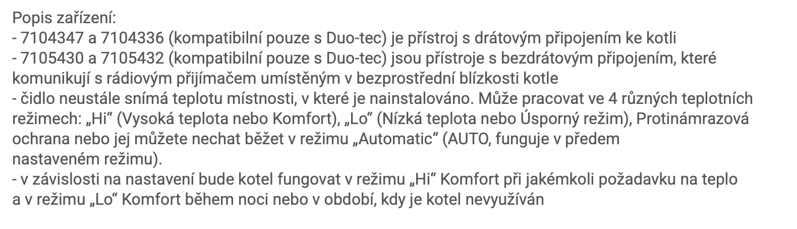 | Typ regulace: | pro kotle |