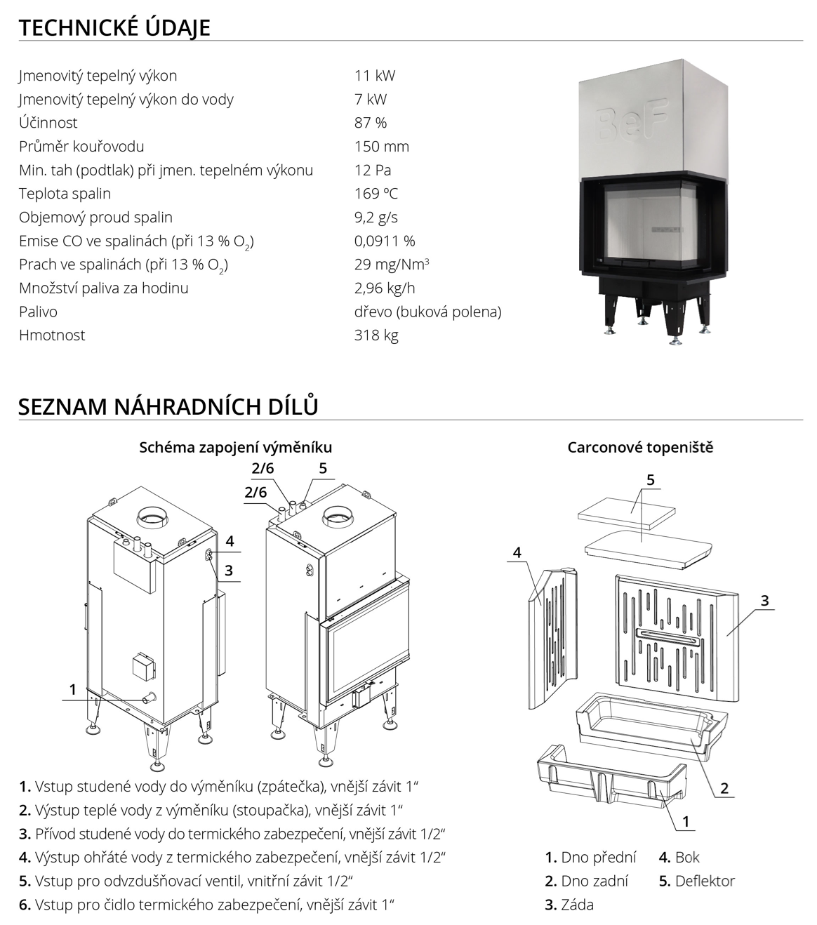 Díky ohništi vyloženému akumulační výstelkou, Carconem, který byl vyvinut speciálně pro naši firmu, je dosaženo vysoké čistoty a účinnosti spalování a příjemného pohledu do ohně. Tělo krbové vložky je pokryto izolací a vložka má dvojité prosklení již ve standardu. I díky tomu je dosaženo maximální efektivity tepla předaného do výměníku.