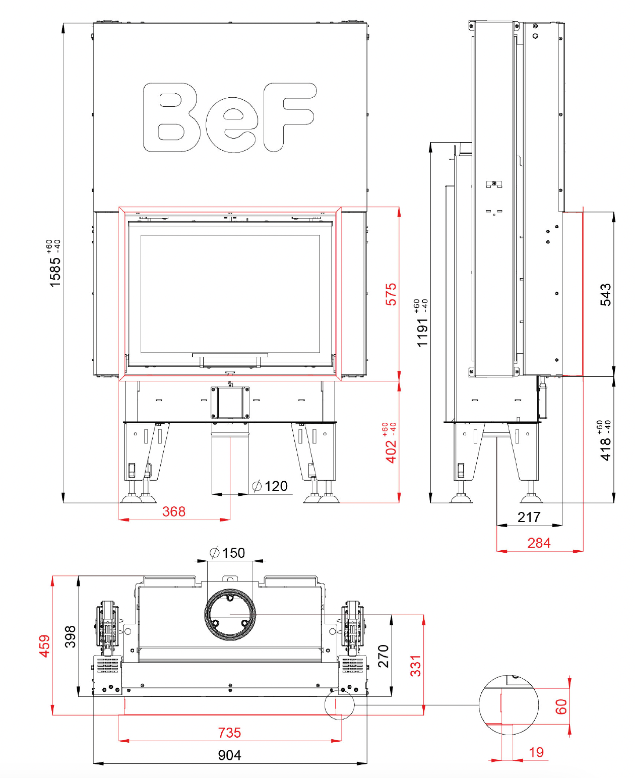 BEF HOME FEEL V 7 krbová vložka 7kW, černá
