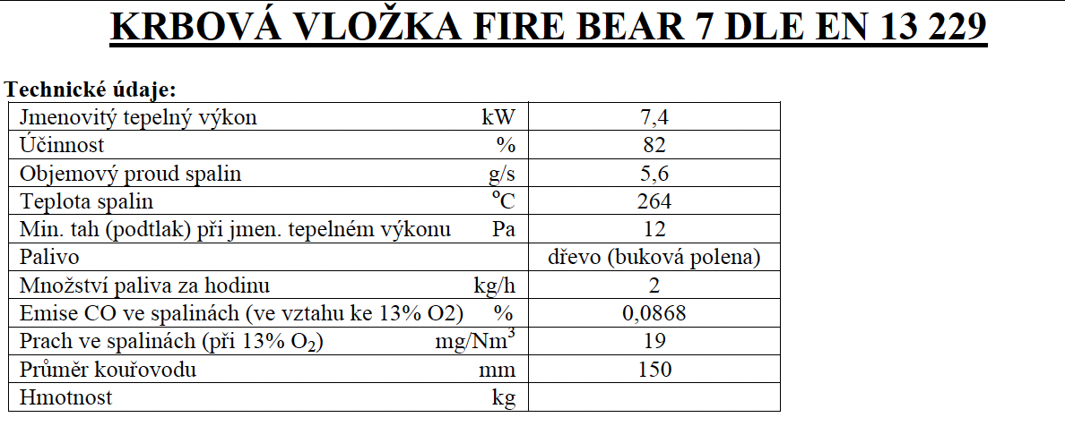 | Typ vložky: | Teplovzdušná krbová vložka |