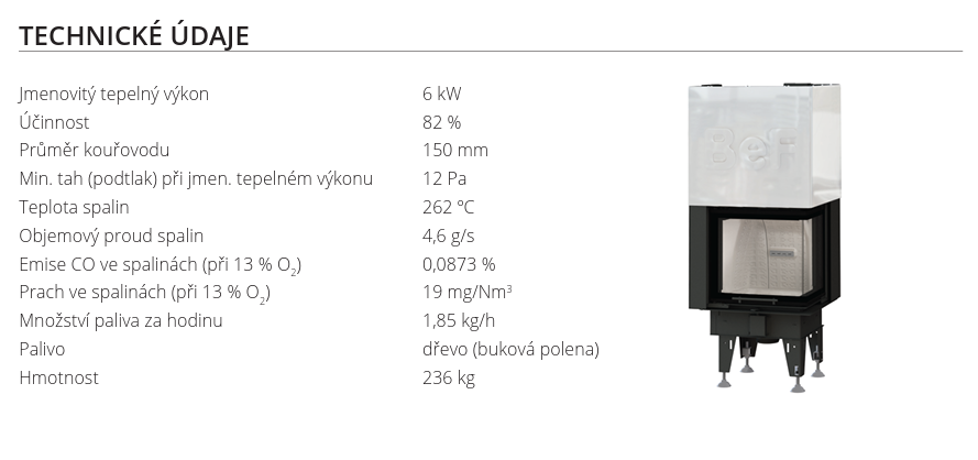 | Průměr kouřovodu: | 150 mm |