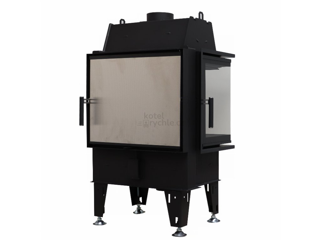 - Krbová vložka má oboje dveře s otevíráním do strany, jedny plné, rovné a druhé prosklené v rohovém provedení (jednodílné ohýbané sklo)