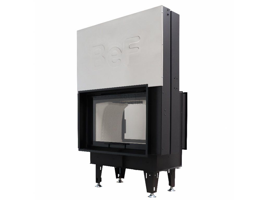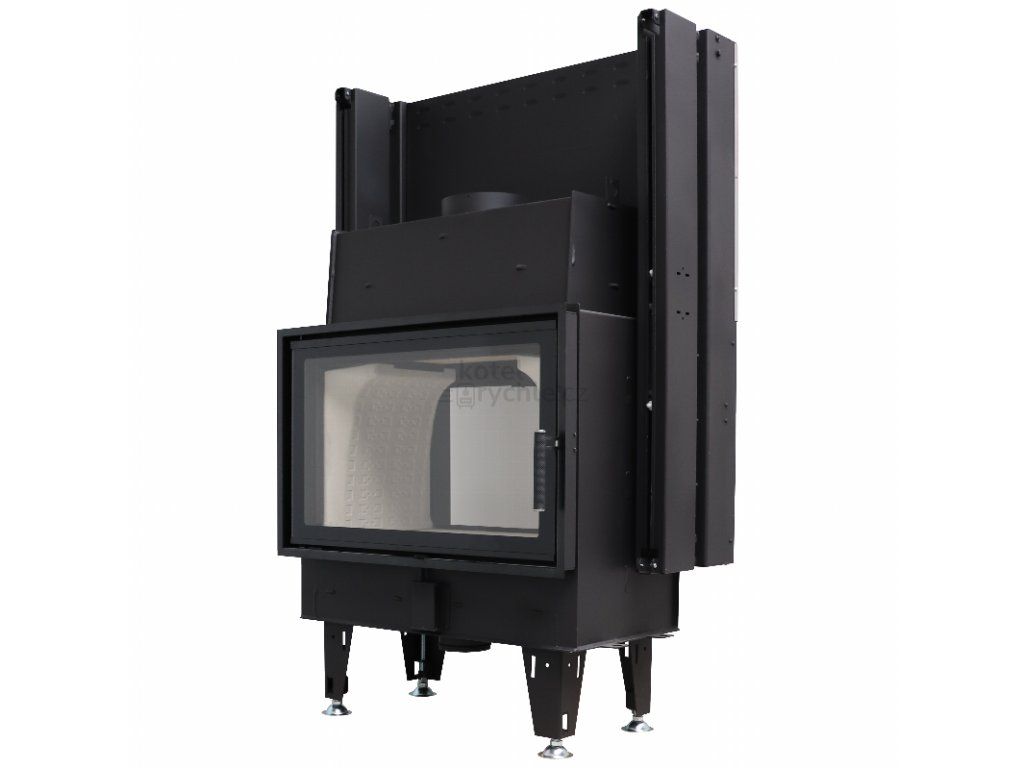 - Průhledová krbová vložka s širokoúhlým prosklením, jedny dveře otvíravé do strany, druhé výsuvné nahoru.