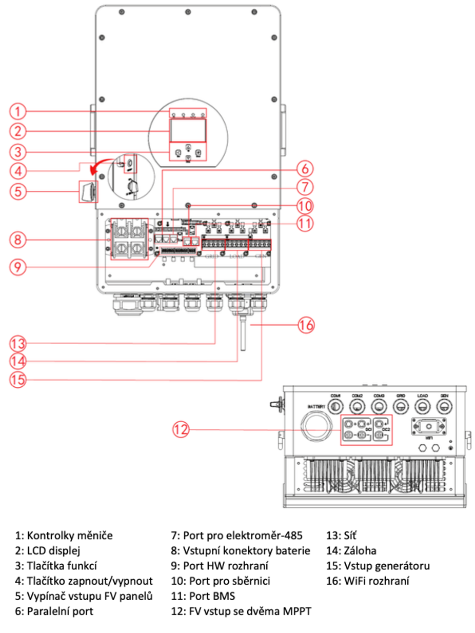 - Podporuje Wi-Fi monitoring a vestavěný MPPT sledovač pro 2 stringy