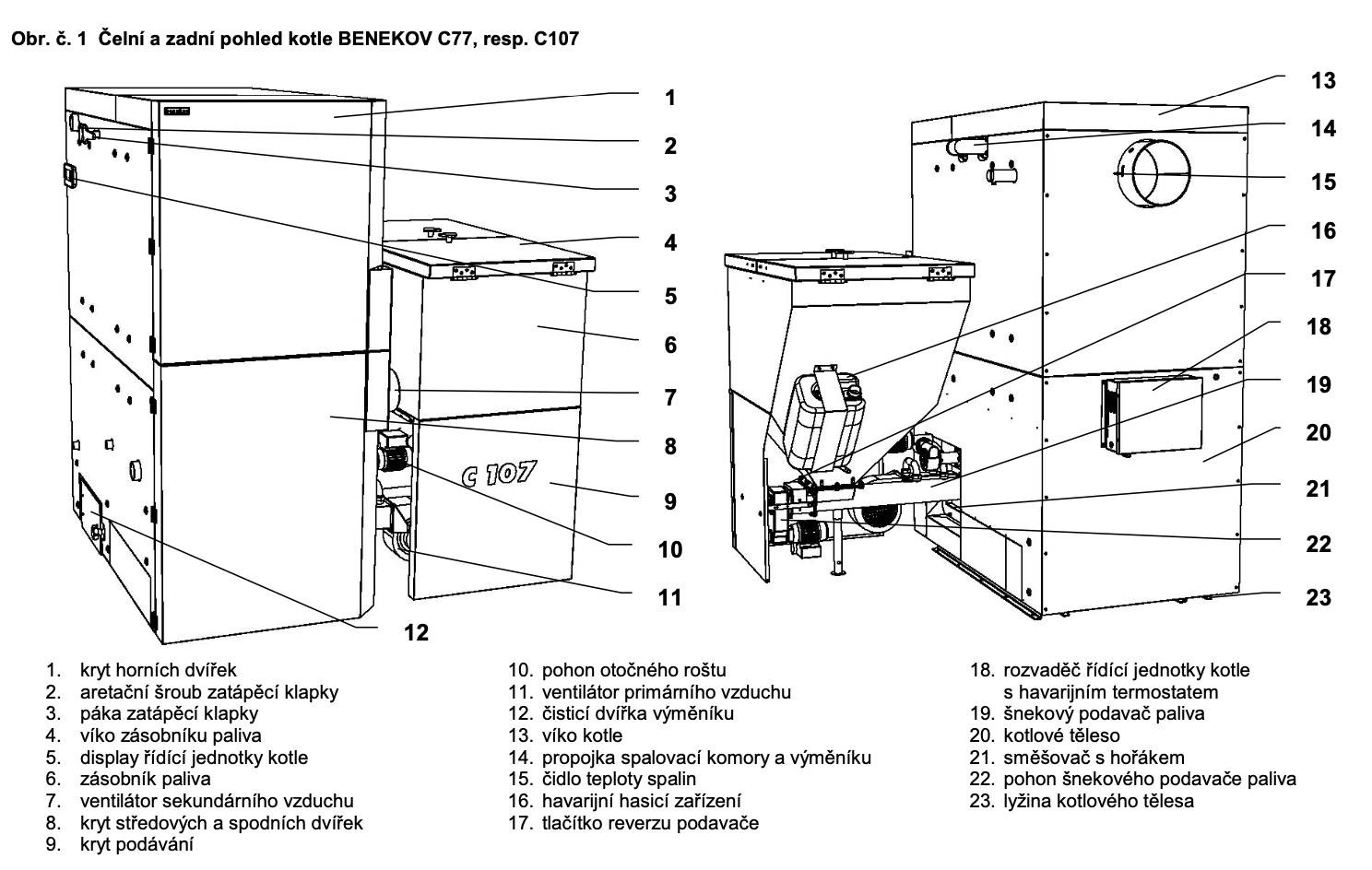 BENEKOV C107 EXCLUSIVE automatický kotel 98 kW na pelety a hnědé uhlí, levý
