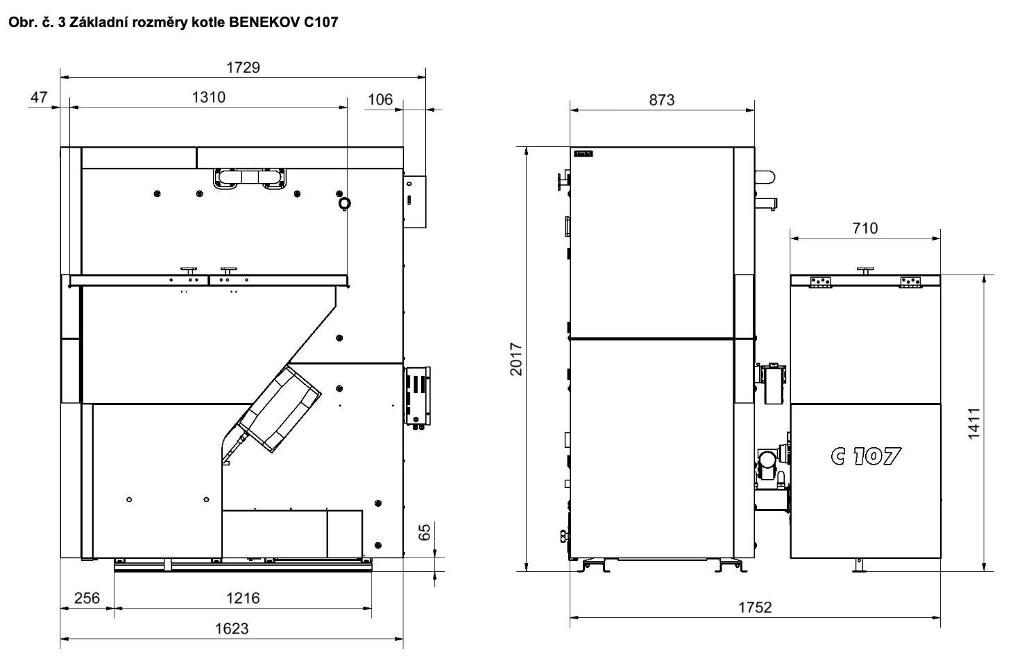 BENEKOV C107 EXCLUSIVE automatický kotel 98kW na pelety a hnědé uhlí, pravý