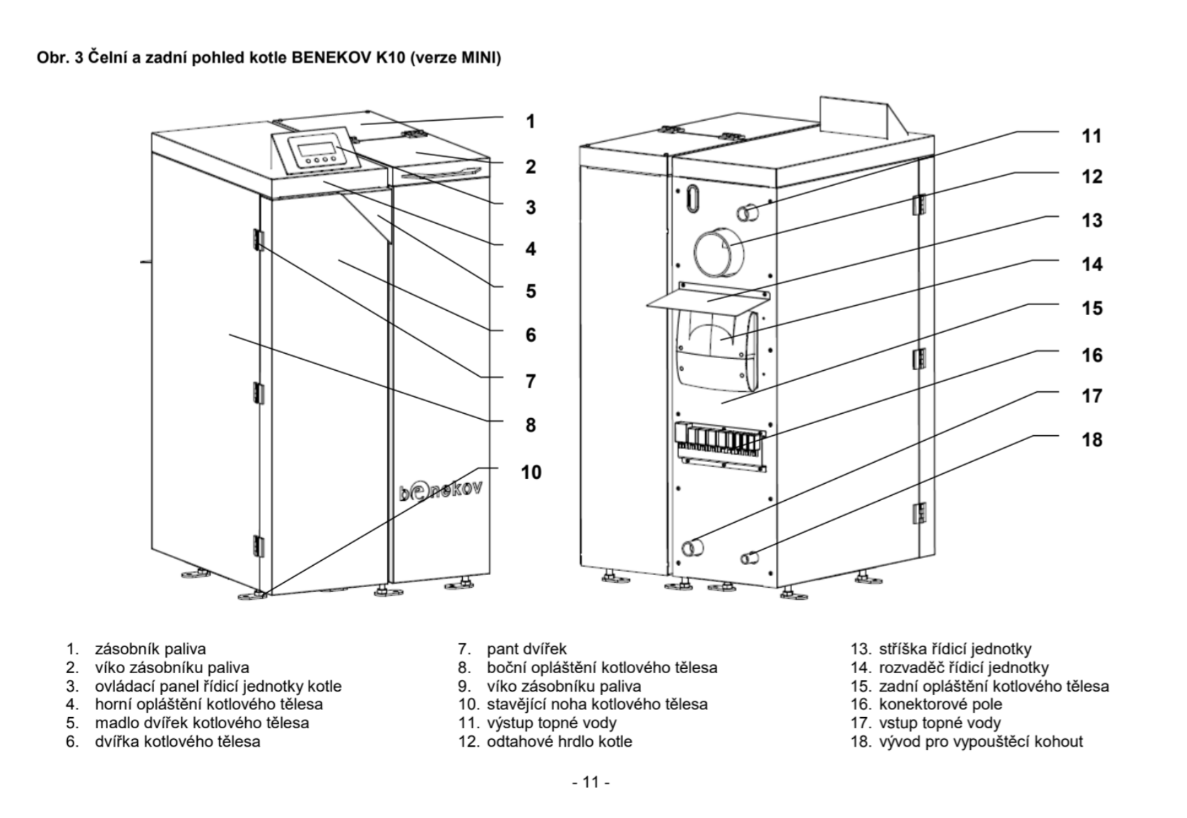 BENEKOV K10 mini kotel na pelety 11kW, 100l, automatický, teplovodní, S.Control regulace, pravý