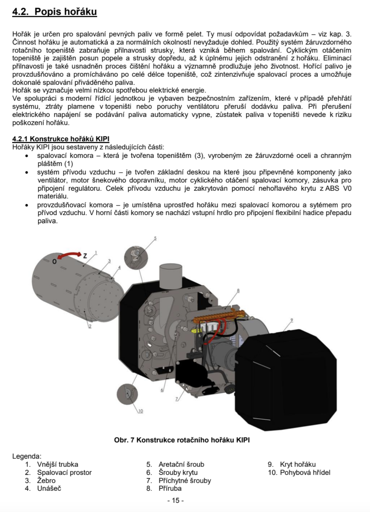 Pokud jsou spalovány pelety s obsahem kůry, je nutno provádět cca 1 x za měsíc pravidelné čištění hořáku, které zabere cca 20 minut.