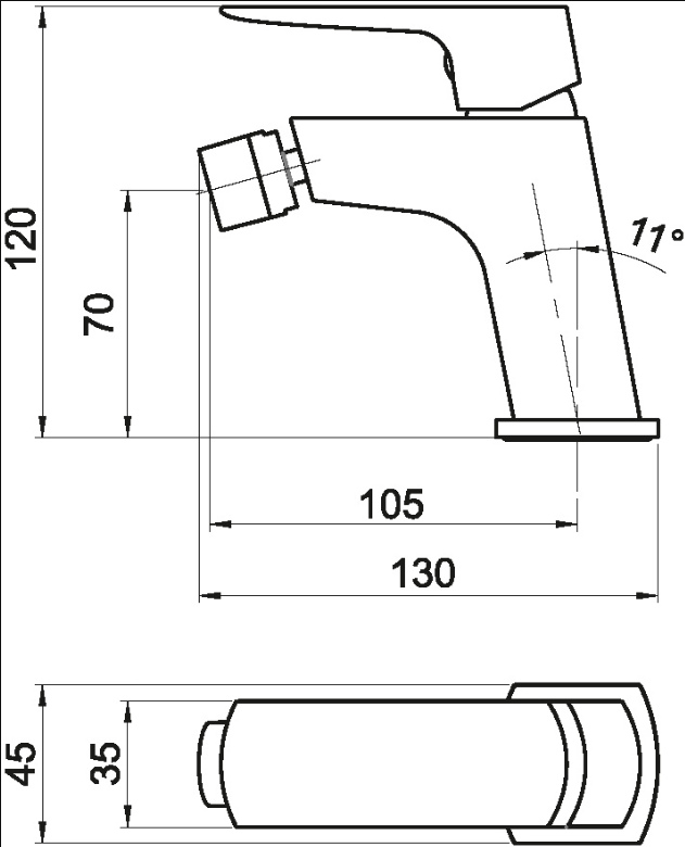 Bidetová baterie s 5/4" uzávěrem výpusti click-clack.