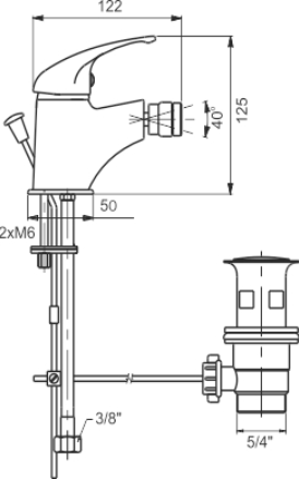 Bidetová baterie s 5/4" uzávěrem výpusti.