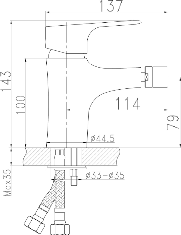 Bidetová baterie s 5/4" uzávěrem výpusti.