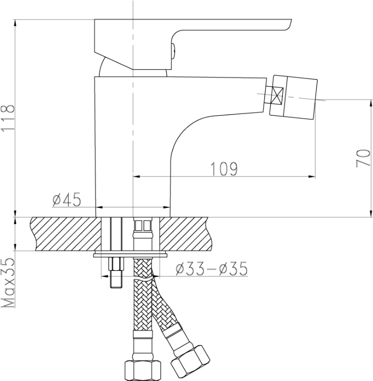 Bidetová baterie s 5/4" uzávěrem výpusti.