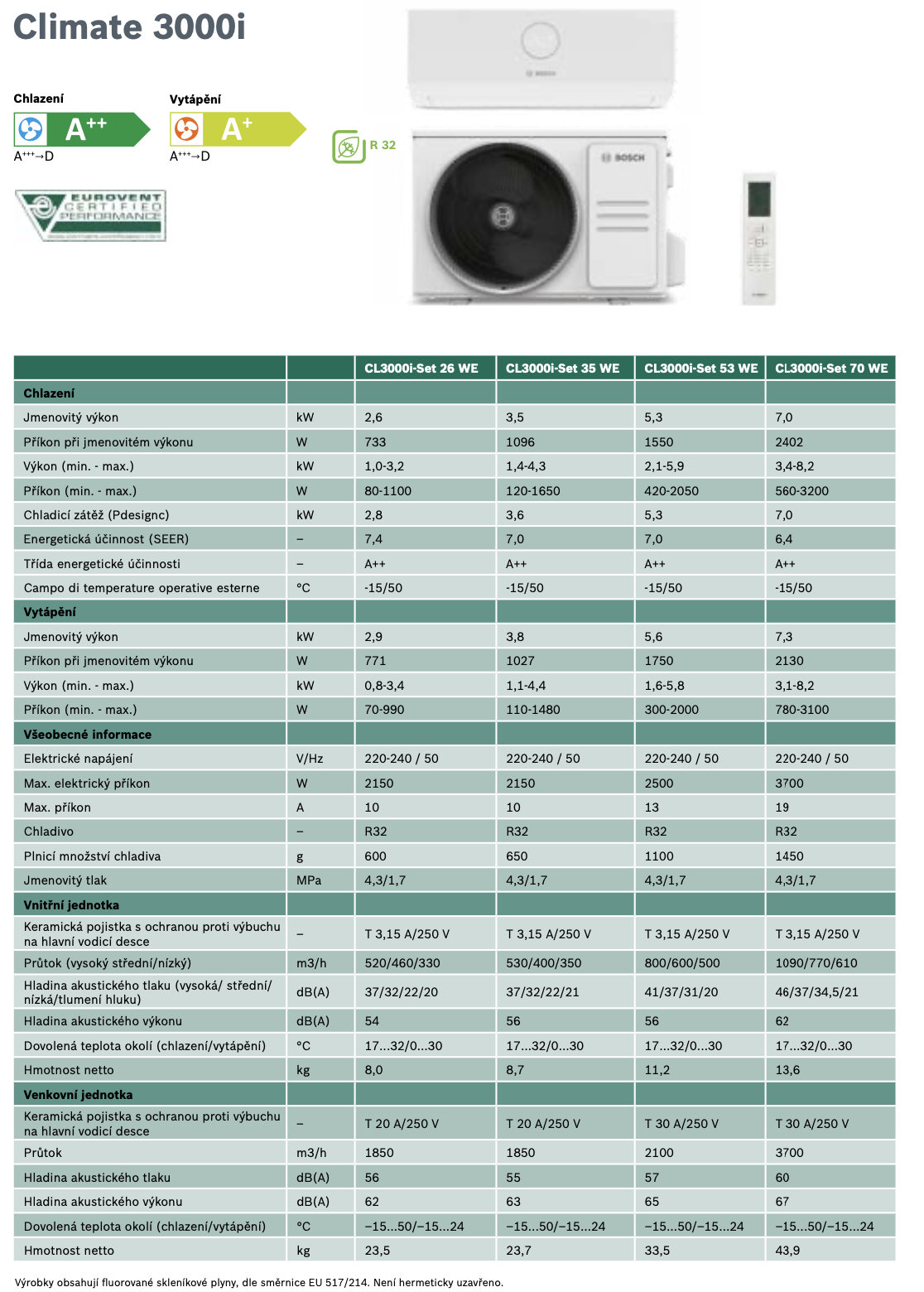 BOSCH CLIMATE CL3000i SET 35 WE klimatizace 3,5kW vnitřní + venkovní jednotka, nástěnná