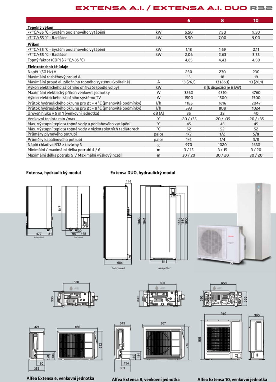 Obecný popis tepelného čerpadla BRILON ALFEA EXTENSA A.I. 10 R32 9,5kW, vzduch-voda, venkovní+vnitřní jednotka:
