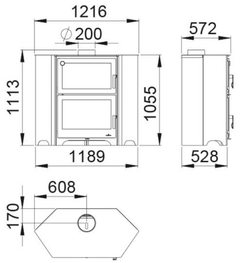 Trouba je ocelová ve spodní části jsou žáruvzdorné tvarovky. Za příplatek je možné dodat troubu v nerezovém provedení.