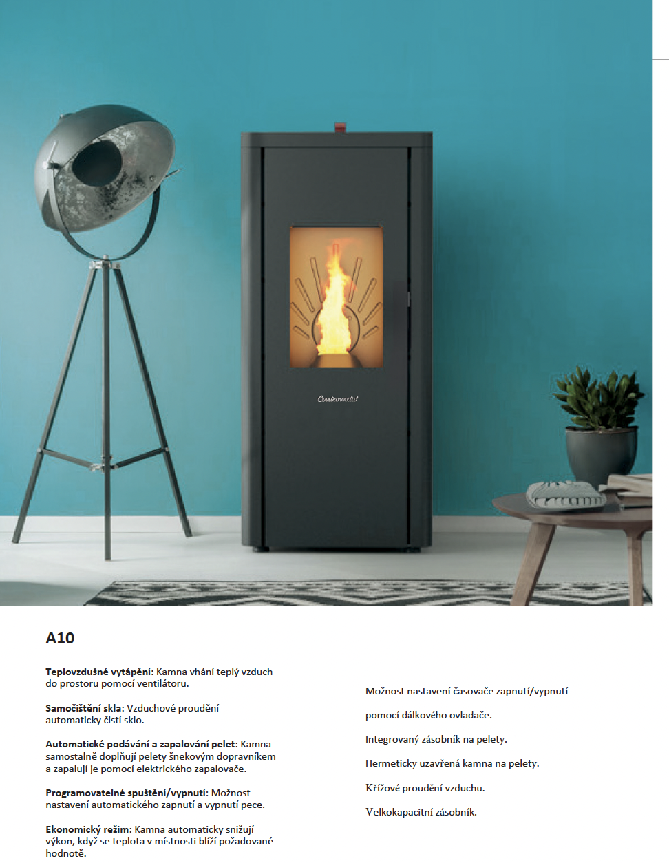 CENTROMETAL CENTROPELET A10 peletová kamna 3,4-8,3 kW, antracit