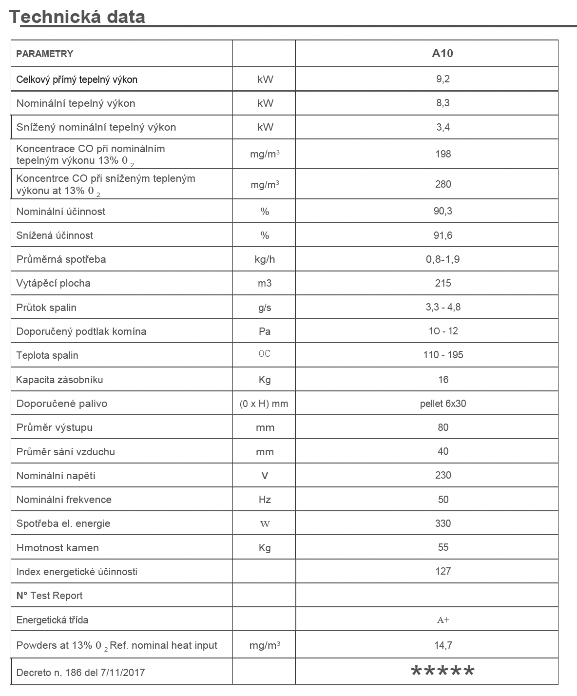 | Jmenovitý tepelný výkon: | 9,2 kW |