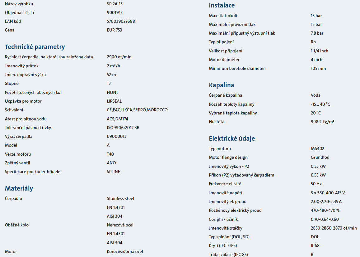 | Rychlost čerpadla, na které jsou založena data: | 2900 ot/min |
