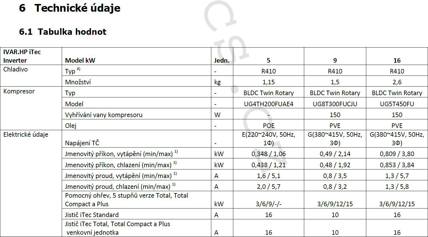 - INVERTER: frekvenční měnič kompresoru přizpůsobuje výstupní výkon tepelného čerpadla aktuální tepelné ztrátě vytápěného objektu