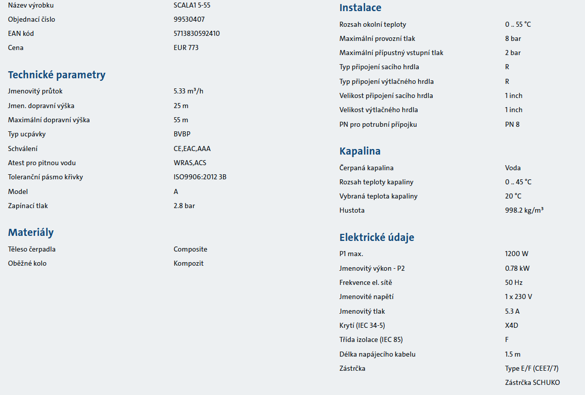 Čerpadlo vodárna Grundfos - SCALA1 5-55 1x230V 50Hz SCHUKO