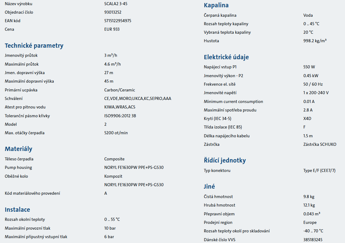 Čerpadlo vodárna Grundfos - SCALA2 3-45 1x200-240V 50/60Hz