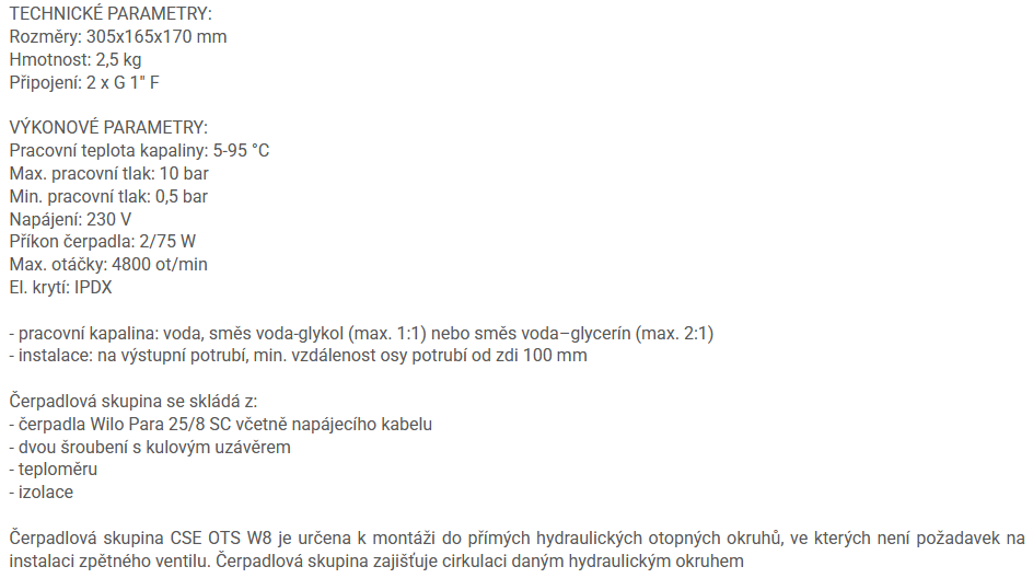 | Označení čerpadlové skupiny: | CSE OTS W8 |