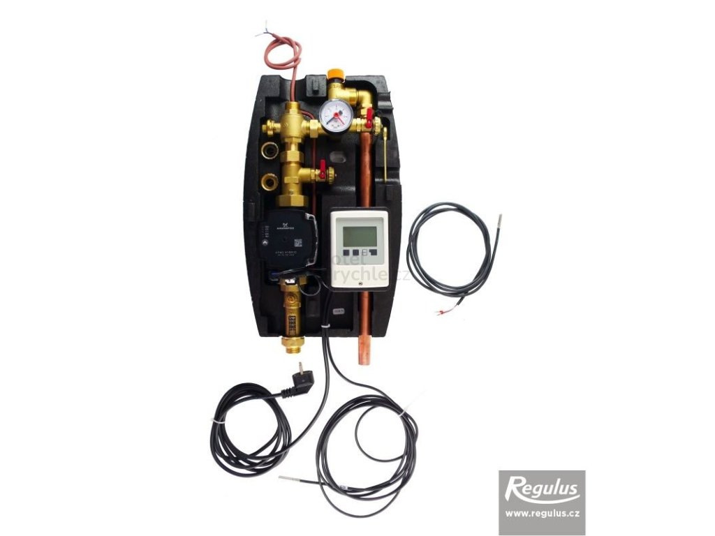 Čerpadlová skupina s integrovaným regulátorem pro řízení solárního systému. Regulátor plynule řídí otáčky čerpadla. Integrovaný mechanický průtokoměr slouží pouze k odečítání průtoku. Samotné nastavení průtoku zajišťuje přímo regulátor.