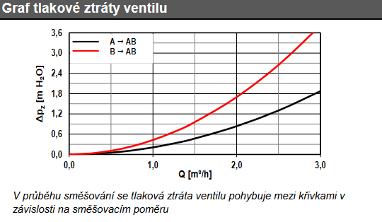 | Kvs termostat. směšovacího ventilu (směr B►AB): | 4,9 m³/h |