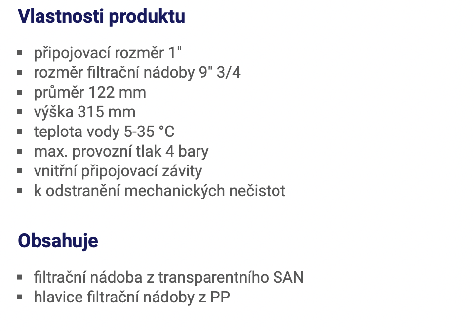 | Rozměr filtrační nádoby: | 9"3/4 |