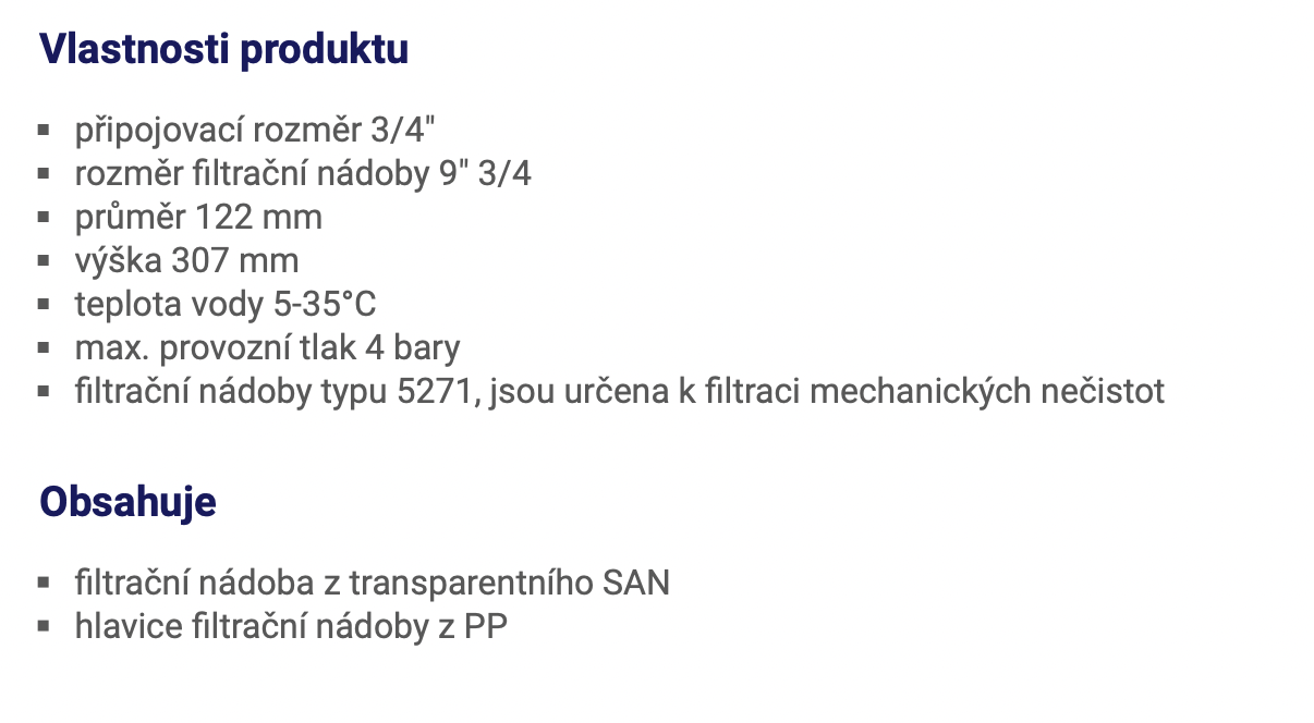 | Rozměr filtrační nádoby: | 9"3/4 |