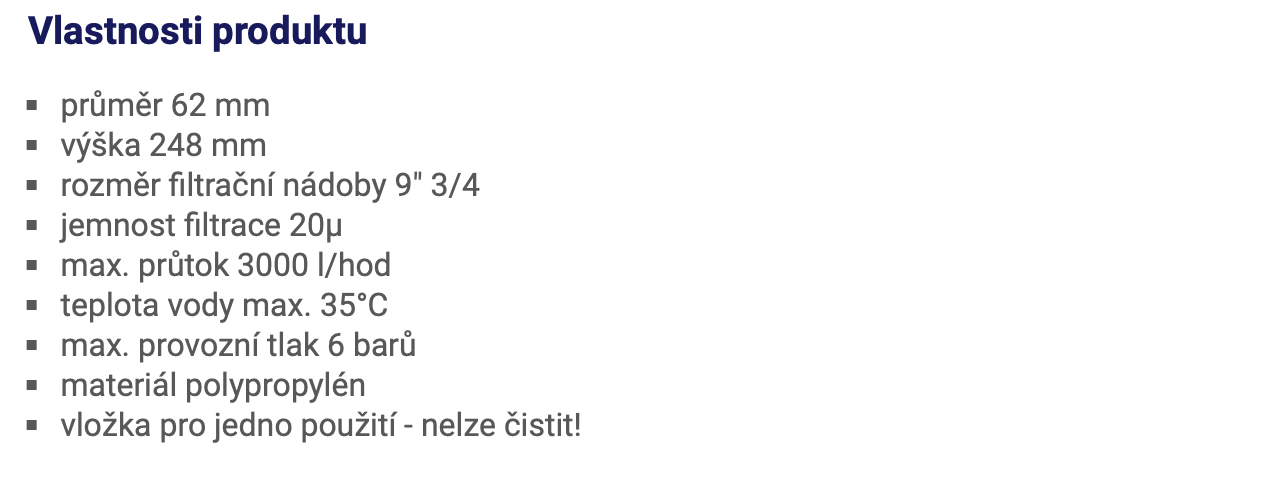 | Rozměr filtrační nádoby: | 9"3/4 |