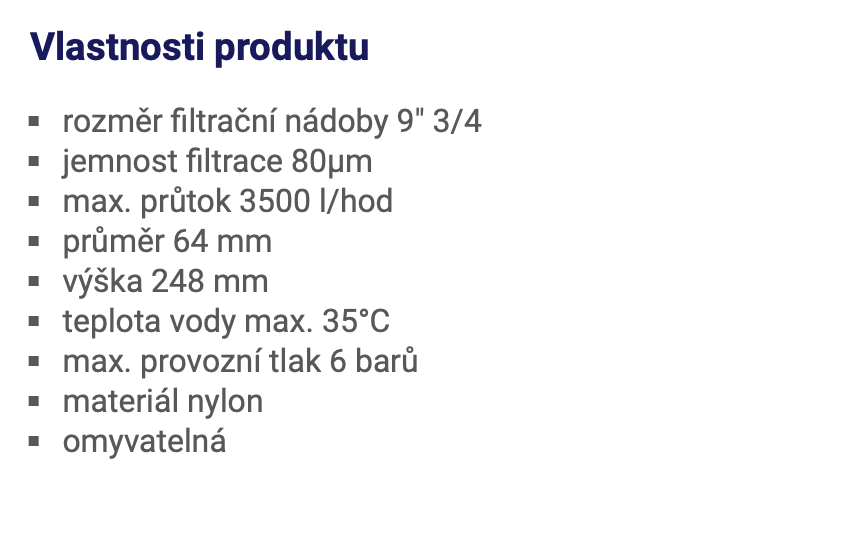 | Rozměr filtrační nádoby: | 9"3/4 |