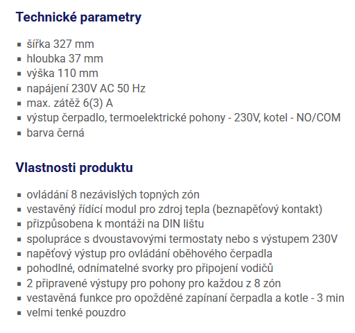 CONCEPT centrální svorkovnice 230V, pro podlahové vytápění, 8 zón, černá