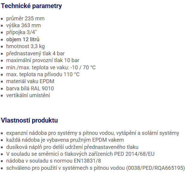 | Objem nádoby: | 12l |
