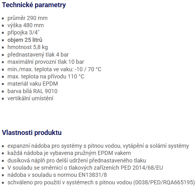 | Objem nádoby: | 25l |