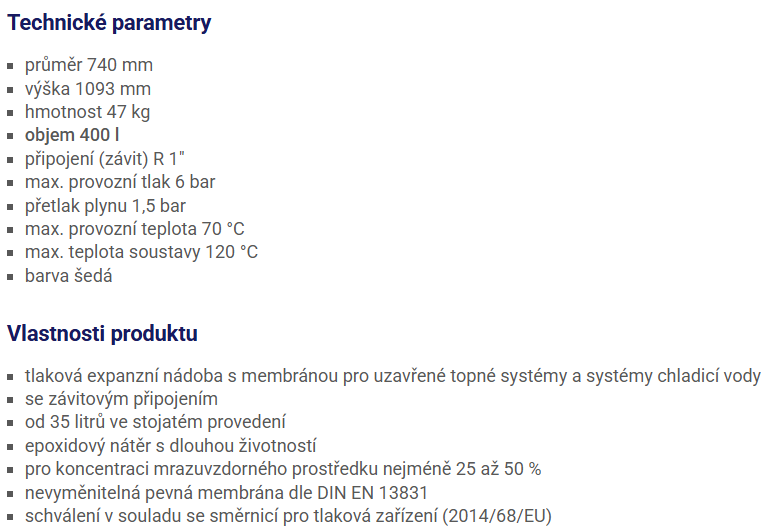 | Typ nádoby: | Expanzomat |