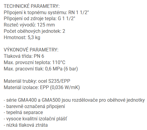 CONCEPT GMA421 rozdělovač RN1 1/2"xG1 1/2", 2 okruhy, pro oběhové jednotky, ocel/EPP