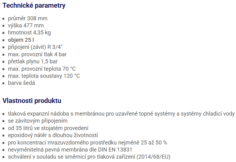 | Typ nádoby: | Expanzomat |