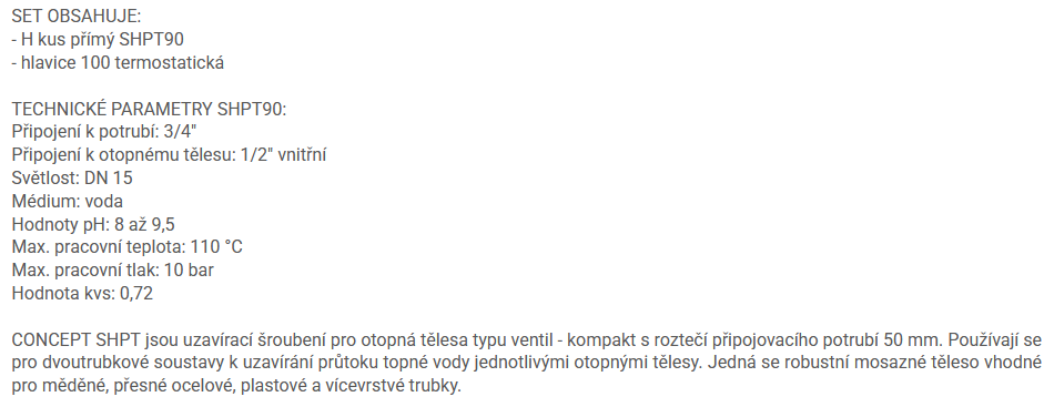 CONCEPT VK PŘÍMÝ H kus přímý SHPT90 a hlavice 100 termostatická