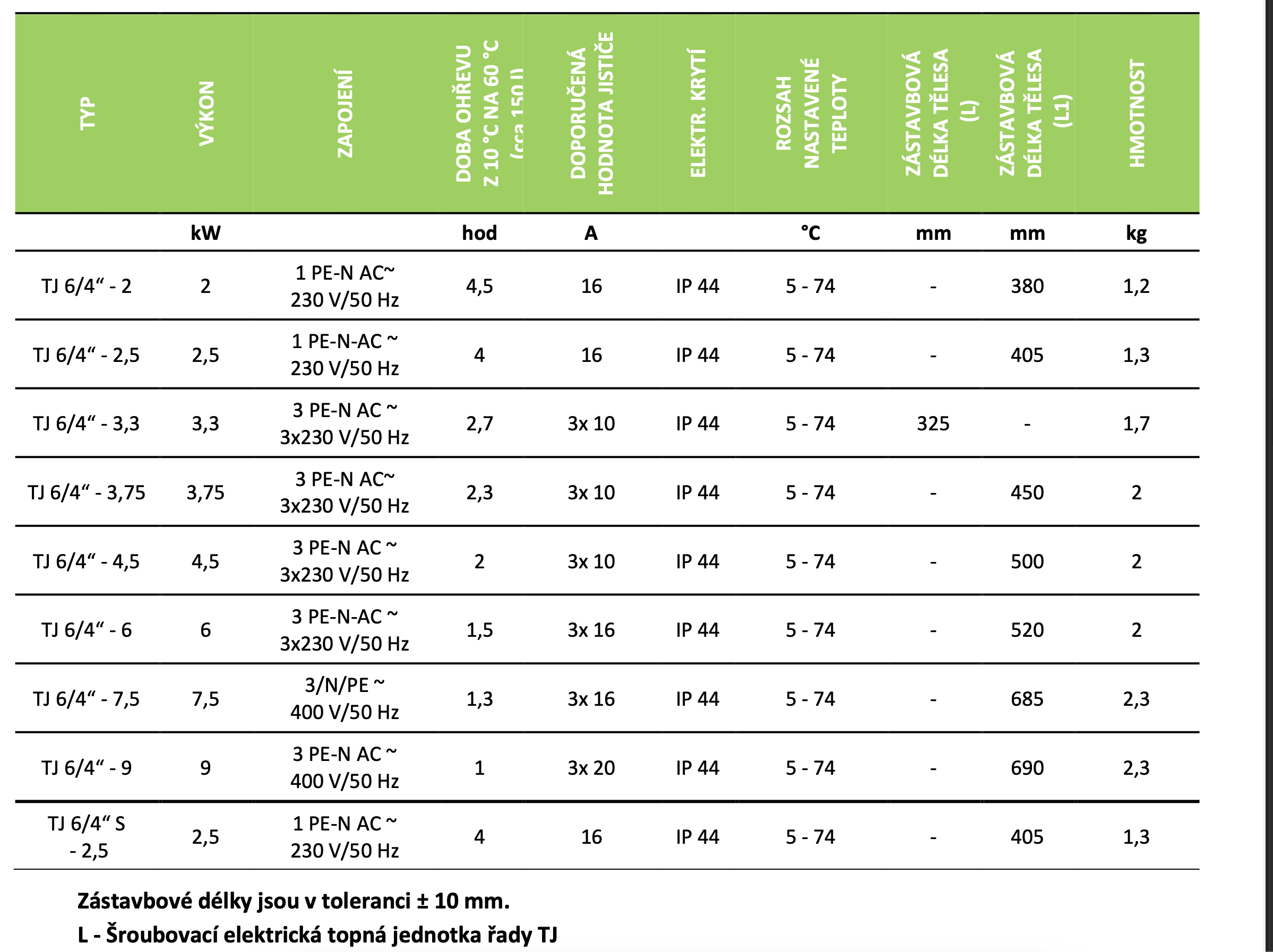 - Výkon topného tělesa lze volit v rozmezí 2–9 kW