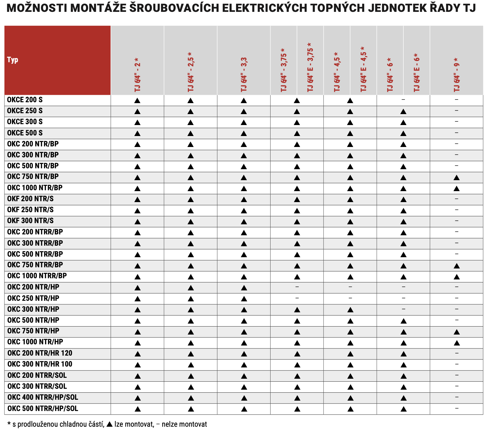 Nesmí se použít do nerezových nádrží. Typy s prodlouženou chladící částí lze použít do akumulačních nádrží s označením v6 a v7.